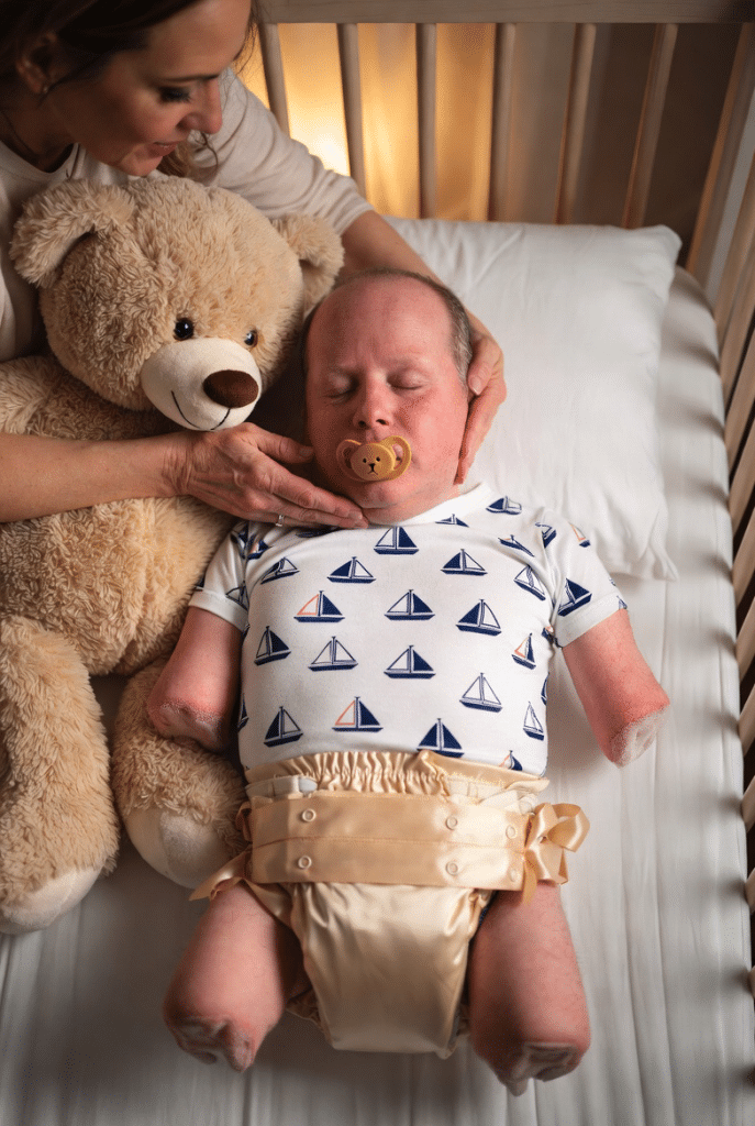 This morning started like every perfect in house day does. I lifted him carefully from his crib, his limbless body so light and trusting in my arms, and carried him straight to the changing table. No rushing today. I unwrapped his nighttime padding and slipped him into his favorite single diaper: a luxuriously thick cloth diaper made of the softest bamboo terry, so plush it feels like a cloud hugging his skin. The outer layer is smooth satin, cool and silky against his thighs, tied with delicate satin ribbons that […]